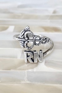 Sterling silver caduceus symbol RN ring is a perfect gift for a registered nurse to honor their dedication to health care, Nursing School graduation gift or pinning ceremony. Sterling silver ring features adjustable band accented “RN” and the...