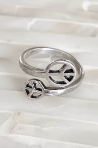 Sterling silver peace sign ring- recognized as the symbol for peace, this ring is the perfect inspirational jewelry gift for any occasion to say peace out! Sterling silver ring features adjustable band with two peace signs . One size...