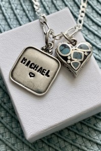 Turquoise heart personalized necklace- customize a mother’s necklace with her child’s name or couple’s necklace with a monogram or anniversary date. Sterling silver, hand stamped necklace. Raised rim square charm has a vintage finish- measures approximately...