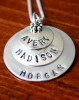 Personalized mothers necklace for a mom of 3- three layered circle charms hand stamped with names of your children to wear close to your heart.