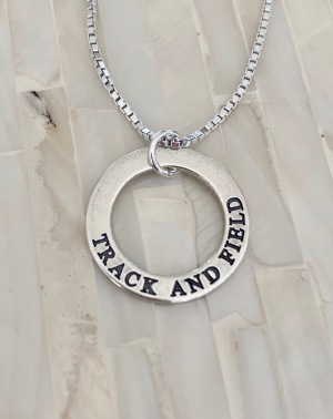 Sterling silver track and field runners necklace- perfect running jewelry gift to celebrate the track athlete in your life, track team or coach gift.