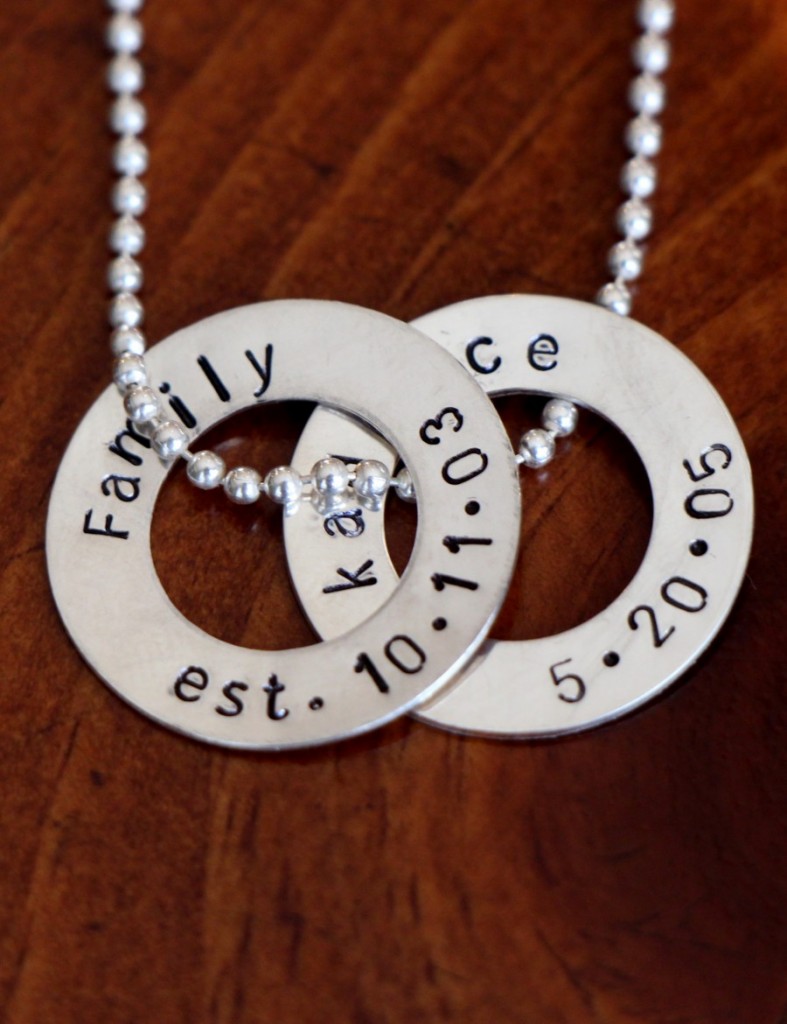 Sterling silver circle washer charm personalized with a name and date- perfect gift for a mothers necklace, graduation or anniversary to celebrate a milestone.