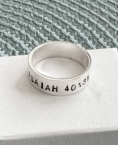Personalized religious ring with Bible Verse, inscription or inspirational message to create a timeless symbol of your faith.