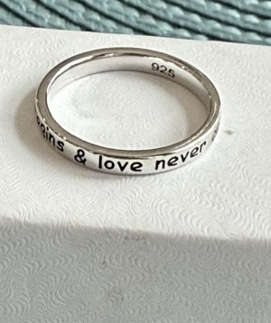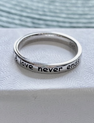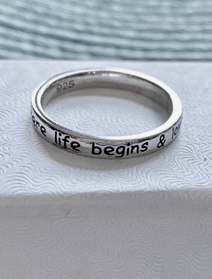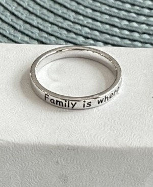 - “Family is where life begins and love never ends” ring measures 2.7mm.