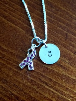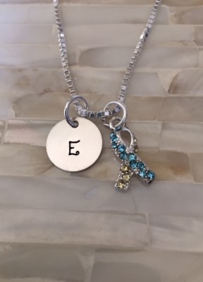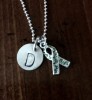Personalized initial necklace with color of awareness ribbon to help support your cause- A beautiful awareness jewelry gift for a fighter, survivor or advocate to wear close to heart.