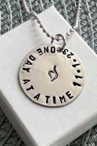 This one day at a time necklace personalized with recovery date and NEDA symbol was an eating disorder support gift to celebrate her first anniversary!