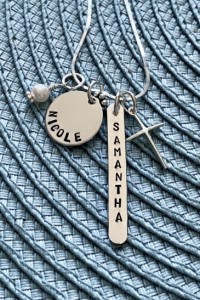 Personalized cross necklace was a confirmation gift for her to celebrate her religious faith hand stamped with ‘blessed’ and sacrament date.