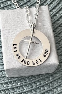 This faith necklace was a religious gift personalized with “let go and let God.” Customize with a name, date or bible verse to keep your faith close to heart.