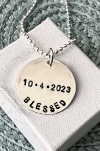 Each piece is sterling silver and hand stamped with your custom personalization.