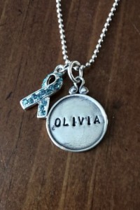 Show your support this September for ovarian cancer awareness and save on personalized ovarian awareness jewelry. Customize a necklace or charm bracelet with a name, inspirational word, initial or date and raise awareness one teal ribbon at a time for a fighter, survivor or advocate!